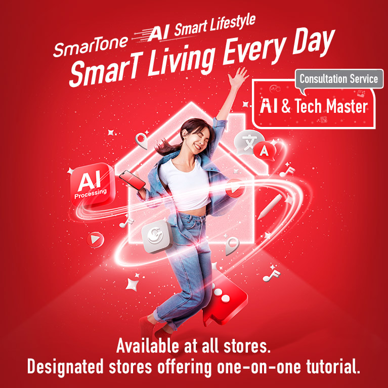 AI & Tech Master is now available at all SmarTone stores – your answer to all things AI! Visit our stores below for a 30-minute one-on-one AI tutorial. You'll get personalised, hands-on guidance to help you master AI with ease! Just pop by any store to book your session one day in advance. It's totally free and everyone's welcome! Come hang out and get AI-savvy!