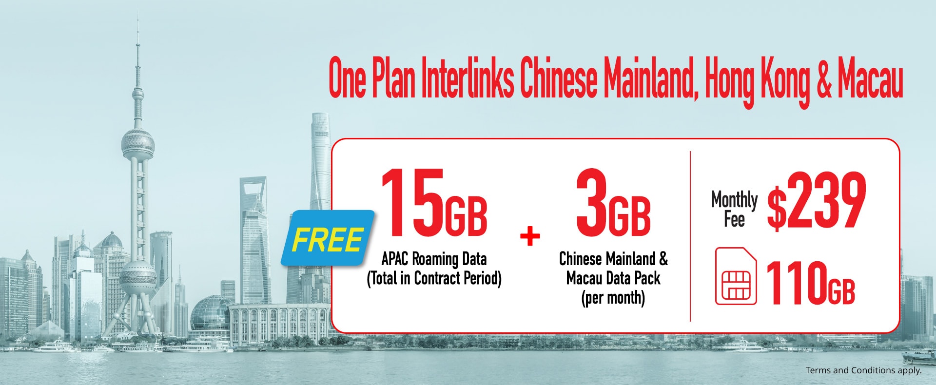 15GB APAC Roaming Data (Total in Contract Period) + 2GB per month Mainland & Macau Data Pack