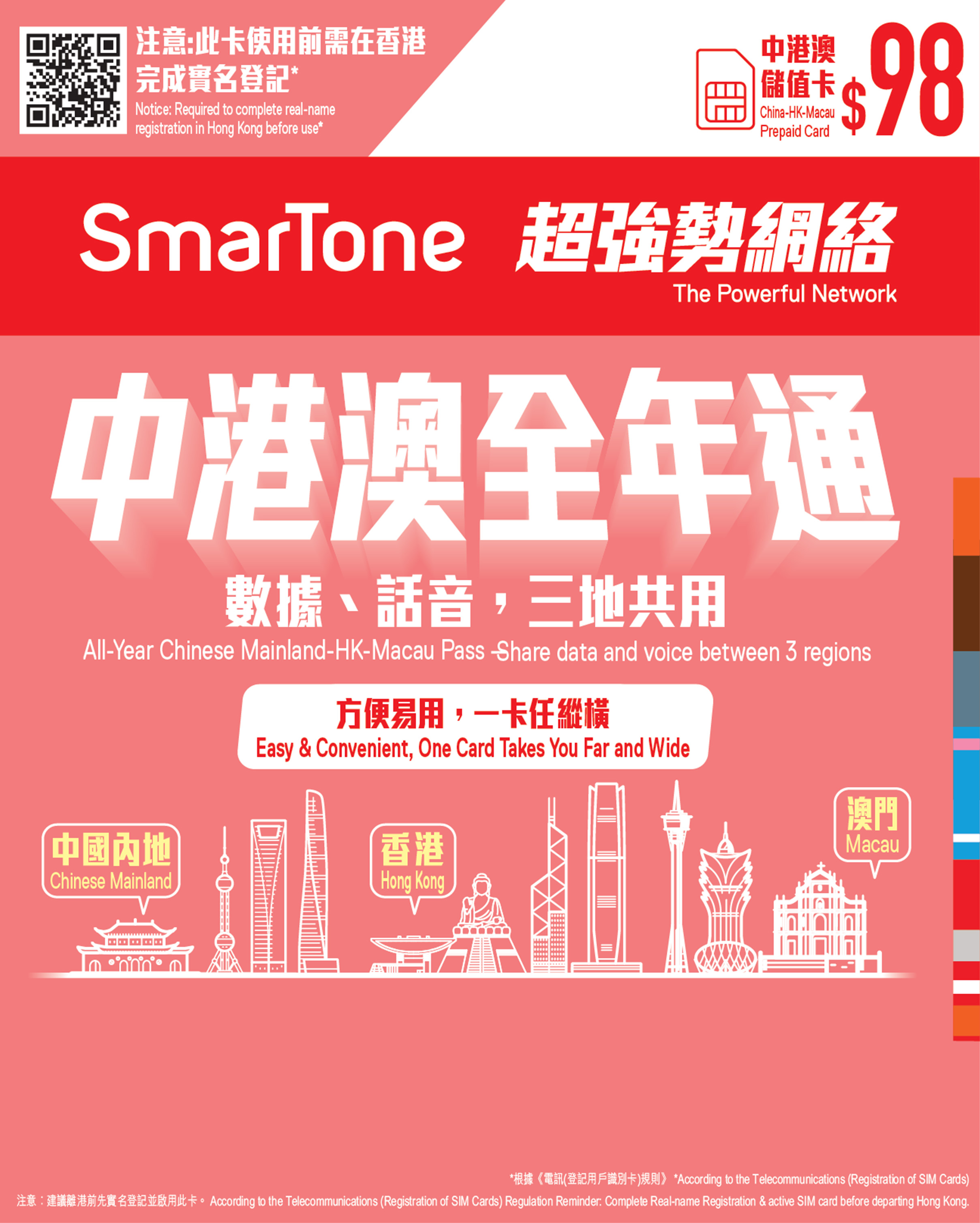 $98 China-HK-Macau Prepaid SIM card - Charges & Packs - SmarTone