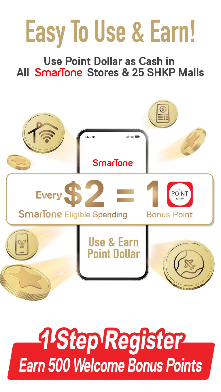 - Earn 1 point for every HK$1 spending in 25 SHKP Malls and GO PARK Sai Sha. Activate “Auto-earn The Point Bonus Points” function to earn points automatically for handset or accessory spending at SHKP Mall SmarTone stores!