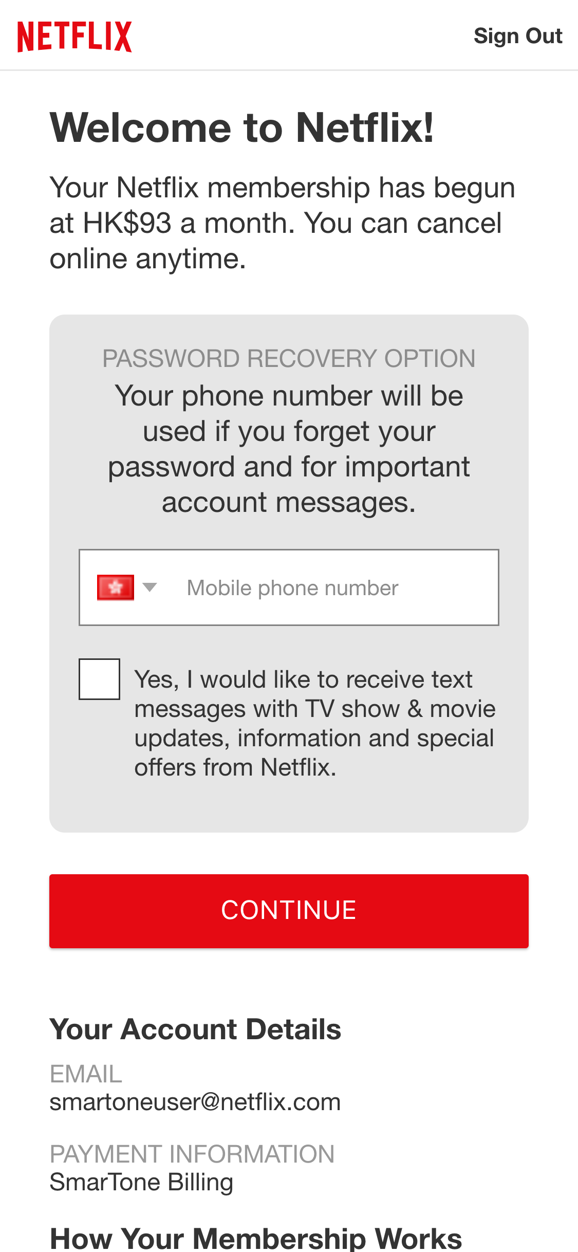 (8) Input your verification code and press “START MEMBERSHIP”. |