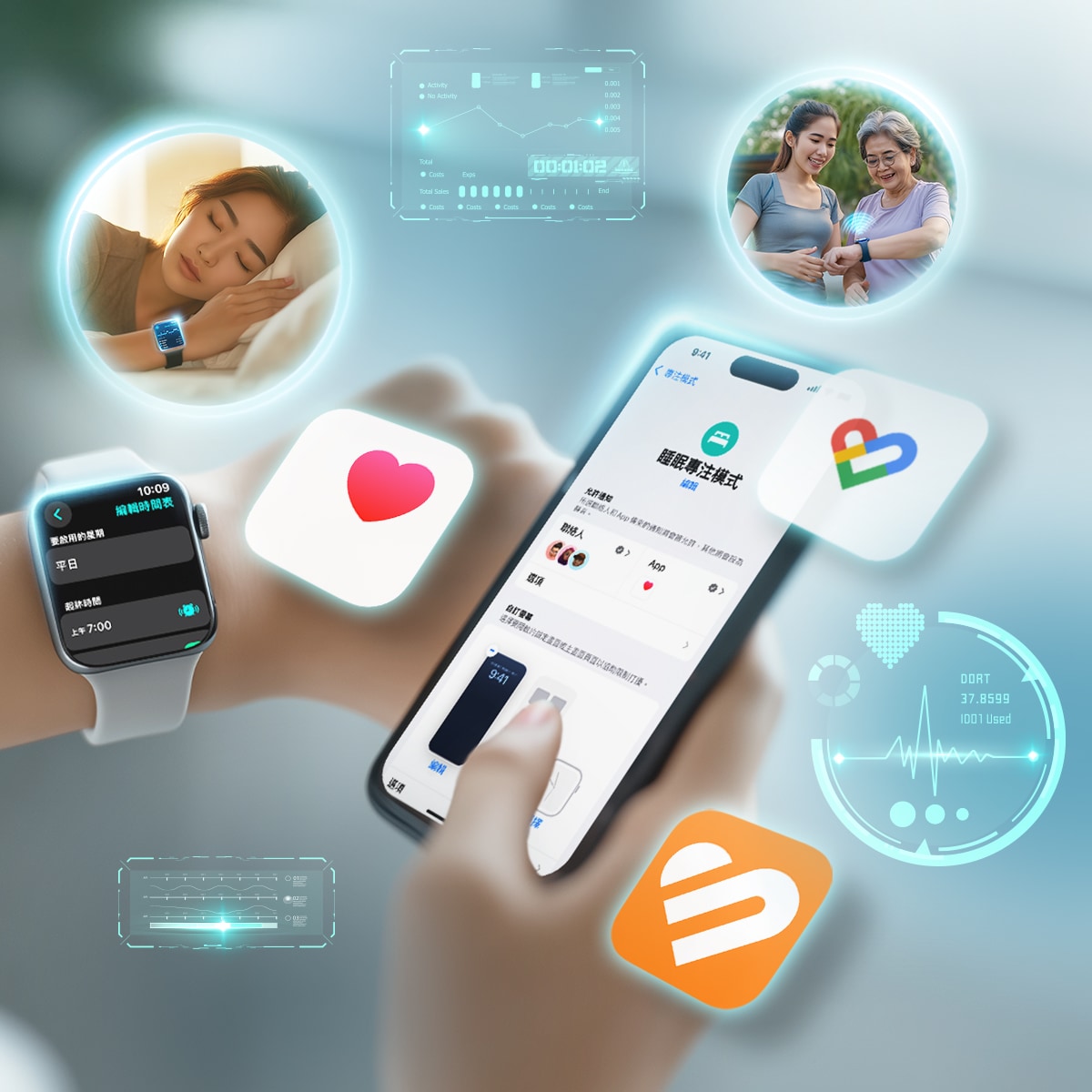 睡眠監測 App也結合了AI 演算法,進行更精細的數據分析與個人化建議。例如根據你的歷史睡眠數據,辨識潛在的睡眠障礙(如睡眠窒息症)、不規律作息或壓力相關問題,並預測你未來的睡眠趨勢。AI 亦可自動生成個人化的睡眠改善建議,例如調整就寢時間、改善環境光線或建議冥想練習,甚至根據你的心率與呼吸變化,主動提醒你注意潛在的健康風險。AI 同時能結合多維度健康數據(如運動量、飲食、壓力指數等),綜合分析你的整體生活習慣對睡眠品質的影響,協助你全方位優化作息,提升健康水平。