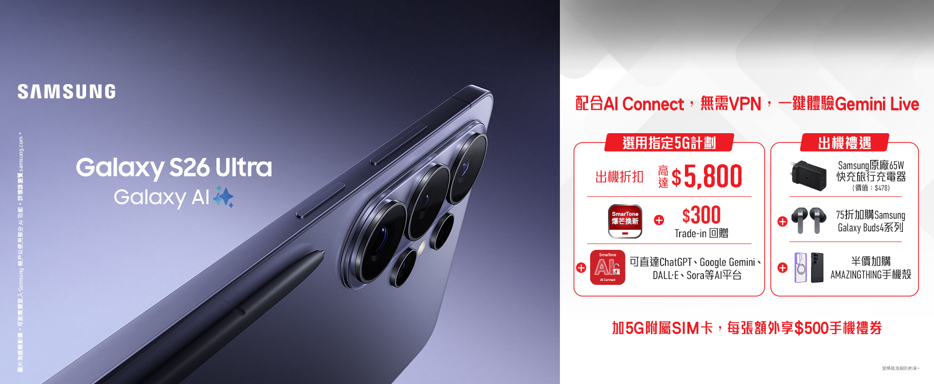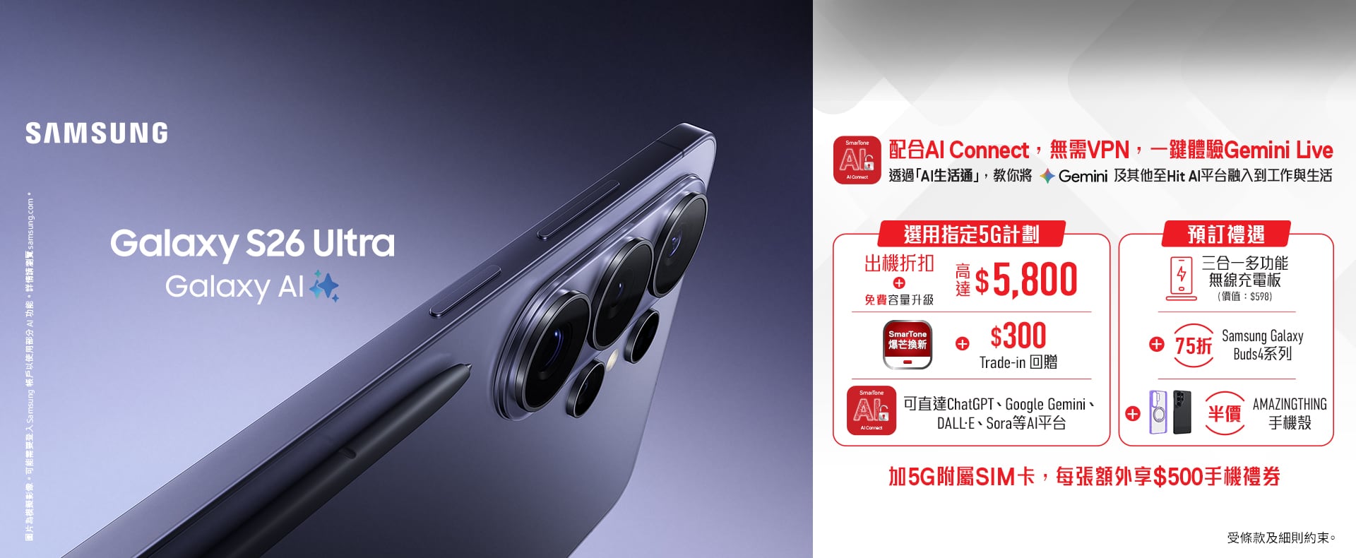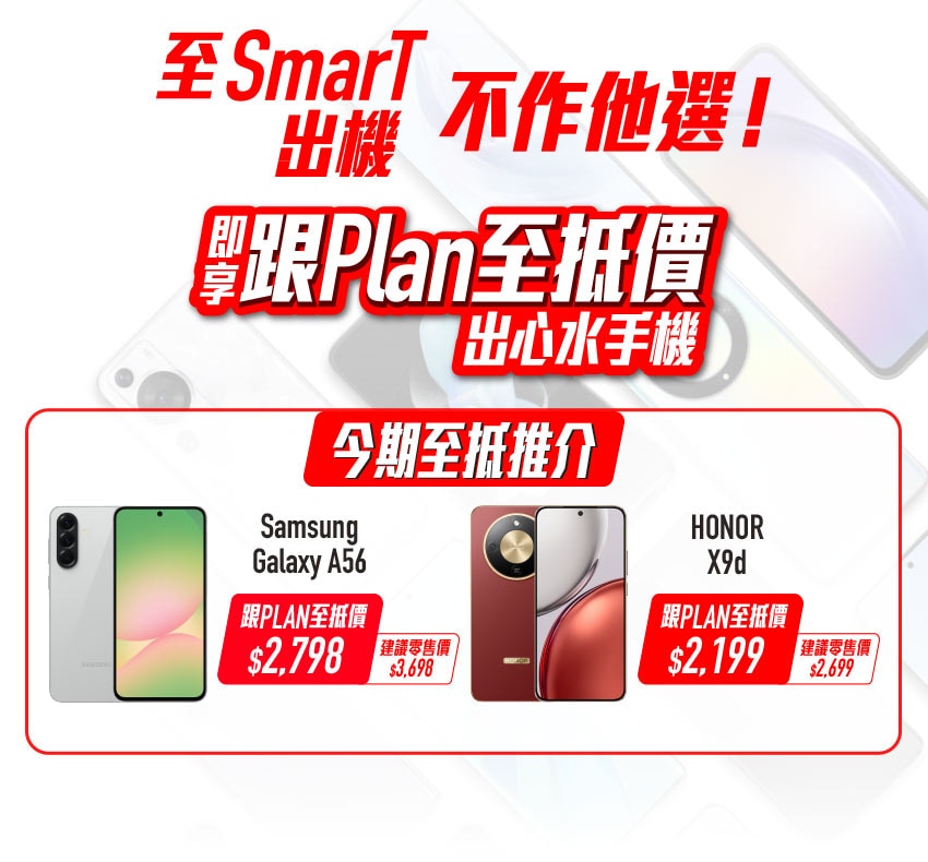 ~根據 FUP(公平使用政策),此計劃包括無限 5G 數據,絕不限速。當每月使用的流動數據用量超過 200GB,無限 5G 數據服務不變,網絡資源因應網絡情況可能有機會改變,詳情瀏覽 smartone.com/hk/TC_FUP2。