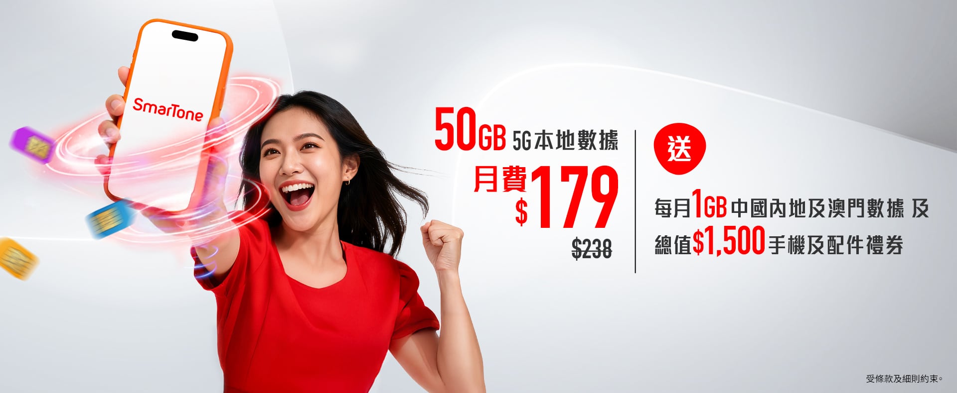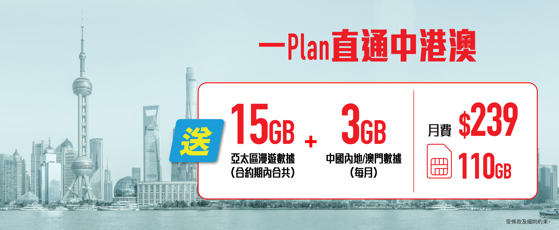 15GB亞太區漫遊數據(合約期內合共)+ 每月3GB內地及澳門數據組合