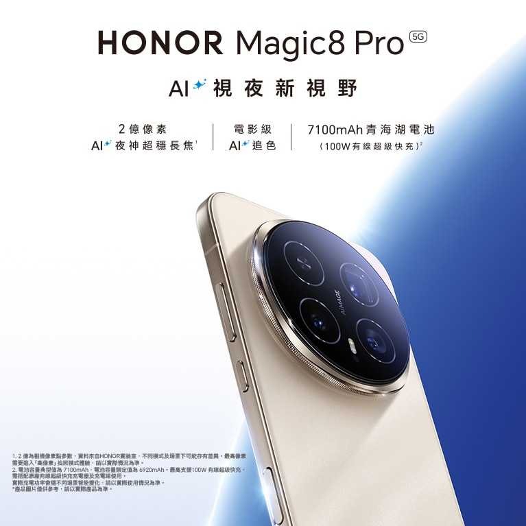 3) Honor Magic8 Pro磁吸手機殼套裝:凡購買Honor Magic8 Pro一部,均可獲贈磁吸手機殼套裝 (價值: $399) 乙個。數量有限,送完即止。
