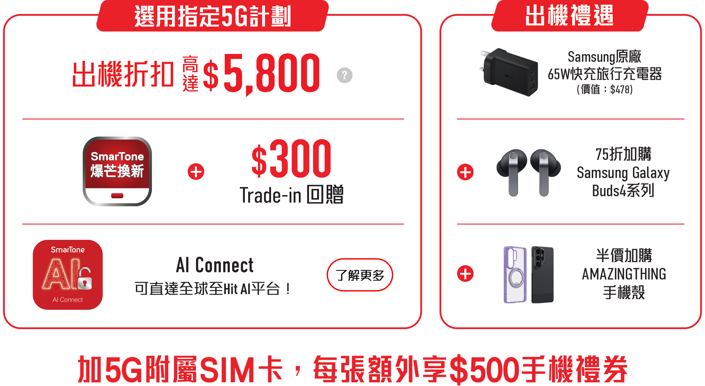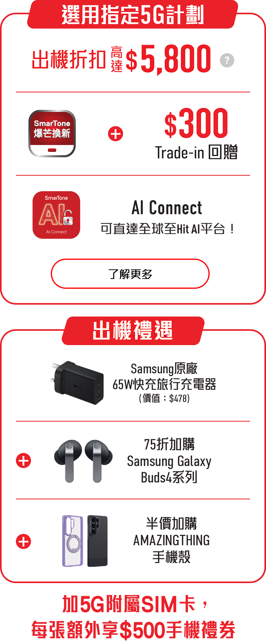 即到 SmarTone 體驗 AI Connect 再入手新機,選用指定計劃享高達$5,800折扣及其他出機禮遇!